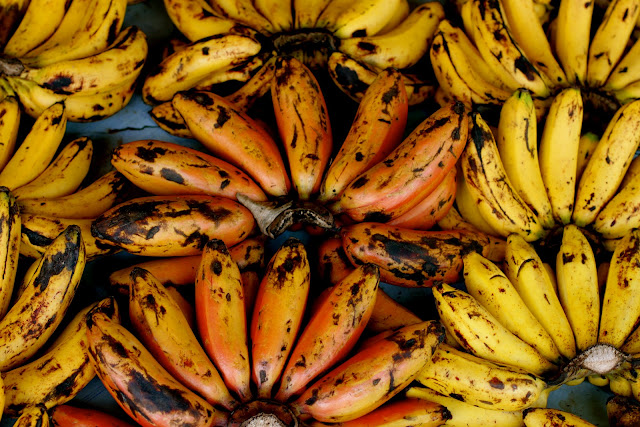 Aesthetically my favorite part is the flower which is the remaining commodity from the banana tree. It is sold in vegetable markets where it is taken home and lovingly chopped and prepared with other mixed vegetables. It is slightly starchy and bitter, but full of nutrition. Lifting up the leaves reveals tiny bananas that would eventually grow into the fruit if it remained on the tree.